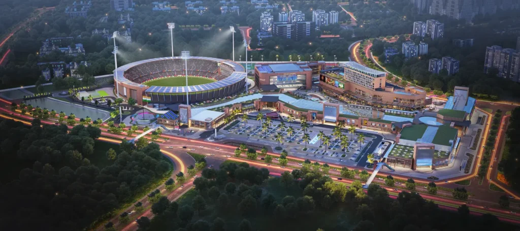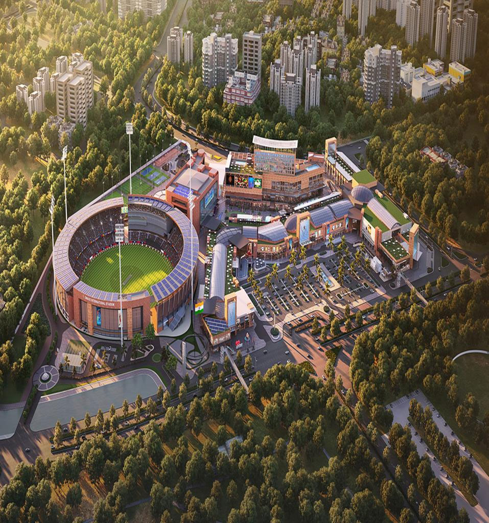 The Omaxe State is a groundbreaking 5-in-1 integrated destination sprawling across 50.4 acres in Dwarka, New Delhi. Designed by 24 world-renowned consultants, this visionary project combines sports, shopping, hospitality, social, and food districts into one extraordinary venue. With 11 entrances, 2211 ECS, and additional surface parking with room for expansion, The Omaxe State is meticulously crafted to cater to a diverse range of activities and events.