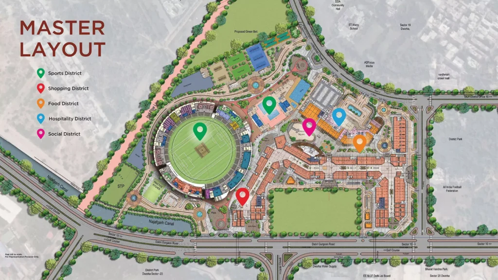 Situated in the heart of New Delhi, Omaxe Dwarka is shaping into a landmark destination, anchored by the Yashobhoomi Expo and Convention Centre—the largest in India. This transformation is positioning Dwarka as a leading commercial and cultural hub, featuring premium retail shops, a vibrant food court, and state-of-the-art multiplexes. With Omaxe’s vision driving this growth, the area’s appeal is set to soar—stay tuned for exciting developments ahead!